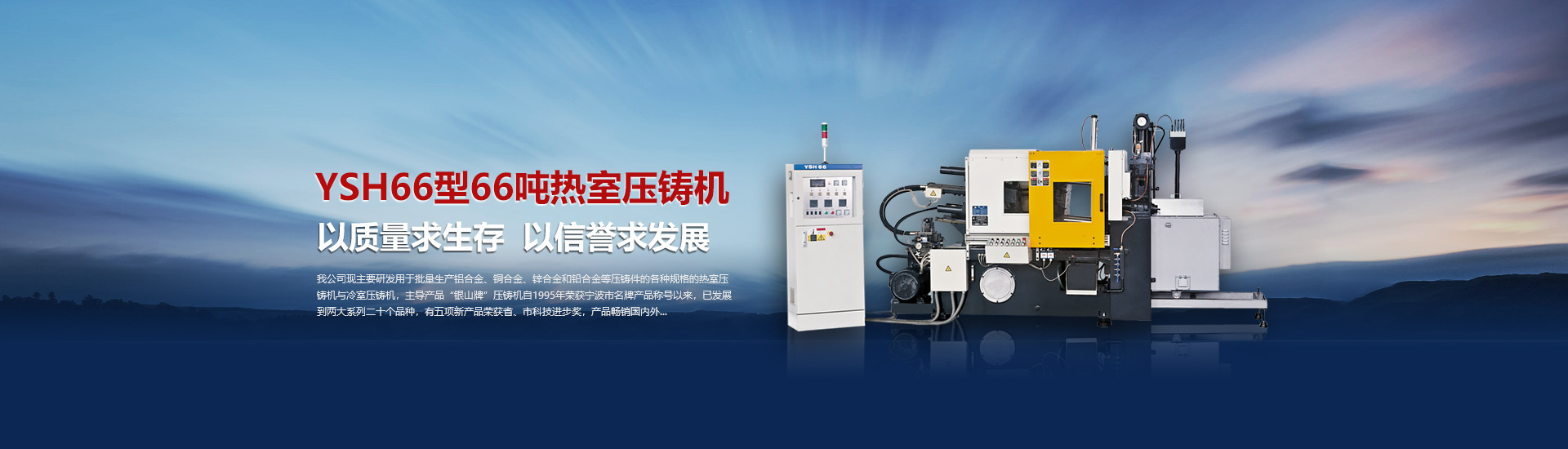 我司現(xiàn)主要研發(fā)用于批量加工生產(chǎn)鋁合金、銅合金、鋅合金和鉛合金等壓鑄件的各種型號規(guī)格的熱室/冷室壓鑄機(jī),主導(dǎo)產(chǎn)品“銀山牌”壓鑄機(jī)自1995年榮獲寧波市名牌產(chǎn)品稱號以來,已發(fā)展到兩大系列二十個(gè)品種,有五項(xiàng)產(chǎn)品曾榮獲省、市科技進(jìn)步獎,產(chǎn)品暢銷國內(nèi)外。歷年來向用戶提供了8000余臺設(shè)備,為中國的壓鑄工業(yè)發(fā)展作出了重要的貢獻(xiàn),企業(yè)獲得了很高的信譽(yù)度。